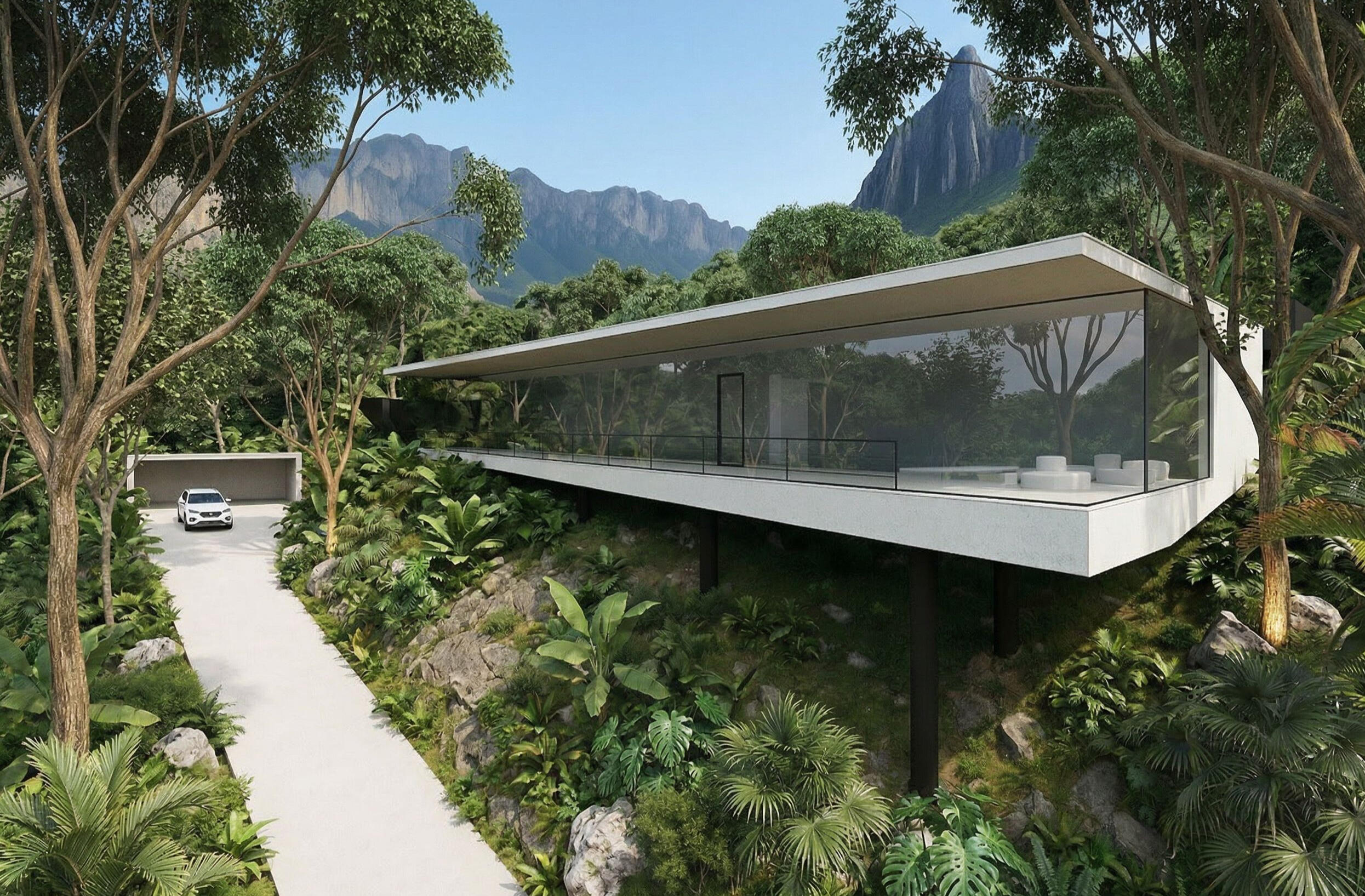 Diseño de espacios para vivir con mínimo impacto integrado en la naturaleza con comfort y estilo.